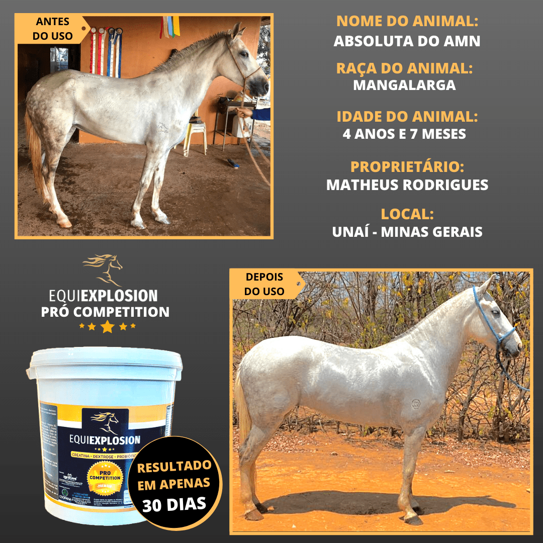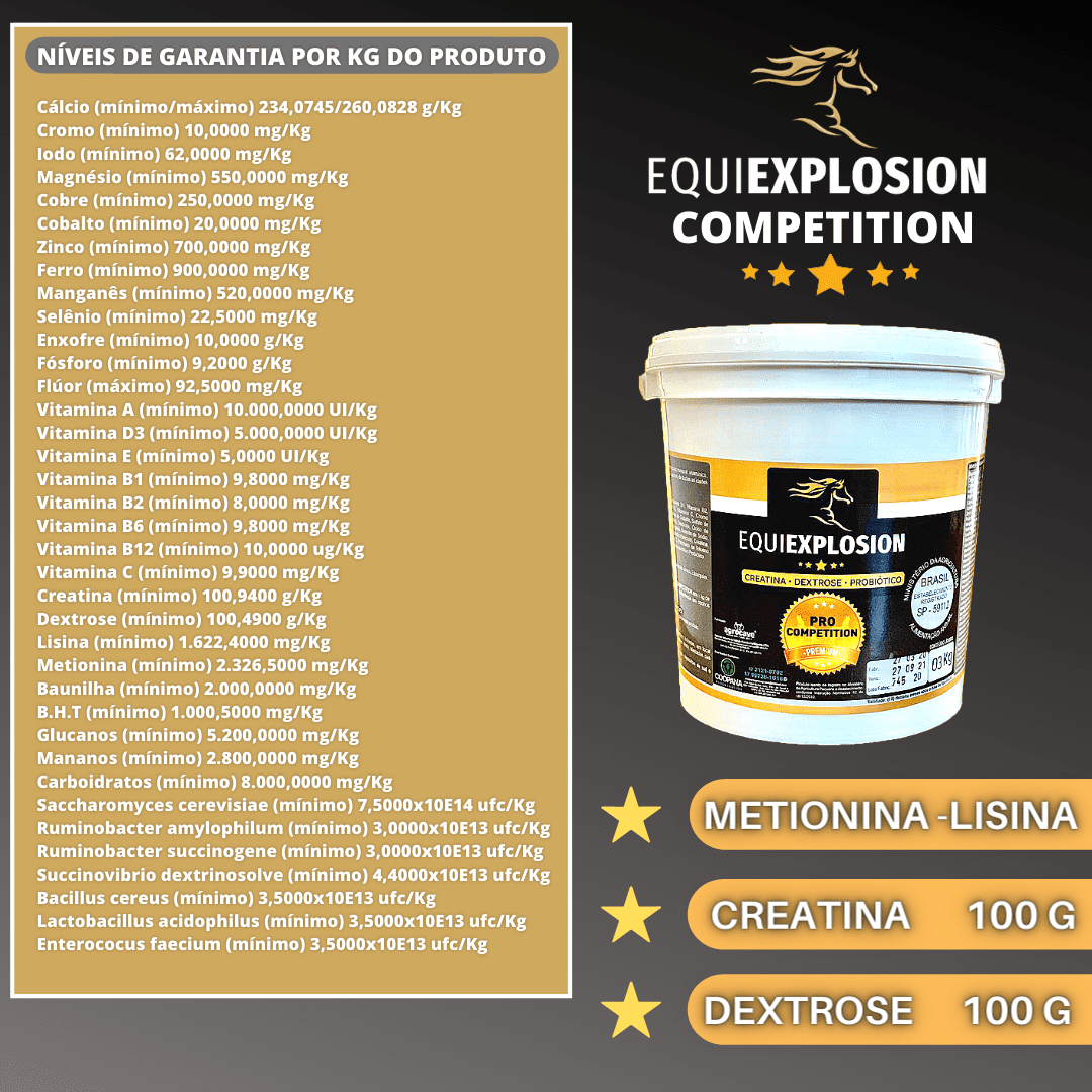 Este suplemento foi especialmente formulado para proporcionar energia, força e resistência aos cavalos adultos em fases de treinamento e competição. Sua composição avançada promove maior explosão muscular, recuperação rápida e suporte contínuo para que seus equinos expressem todo o seu potencial atlético.